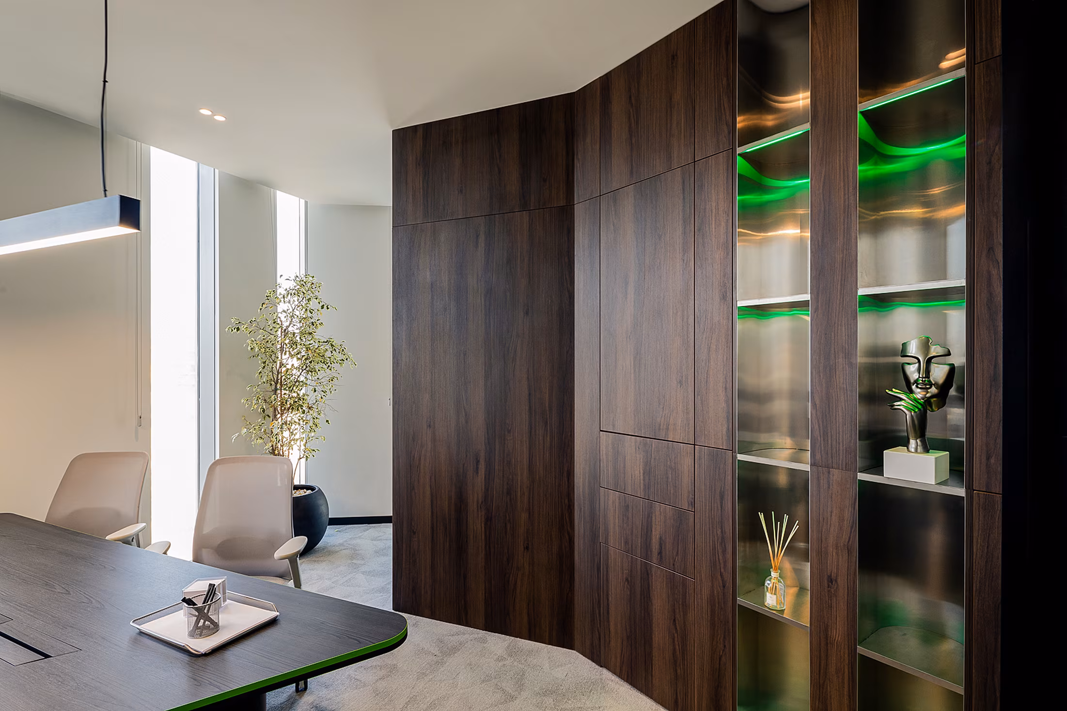 Every detail is thoughtfully curated to ensure comfort, efficiency, and a cohesive visual identity of the space.